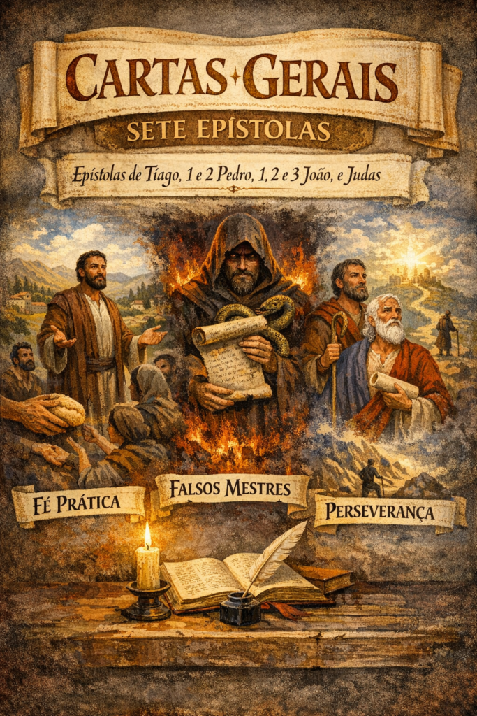 Cartas Gerais – sete epístolas (Tiago, 1 e 2 Pedro, 1, 2 e 3 João, Judas) dirigidas a audiências mais amplas, abordando temas como fé prática, falsos mestres e perseverança.