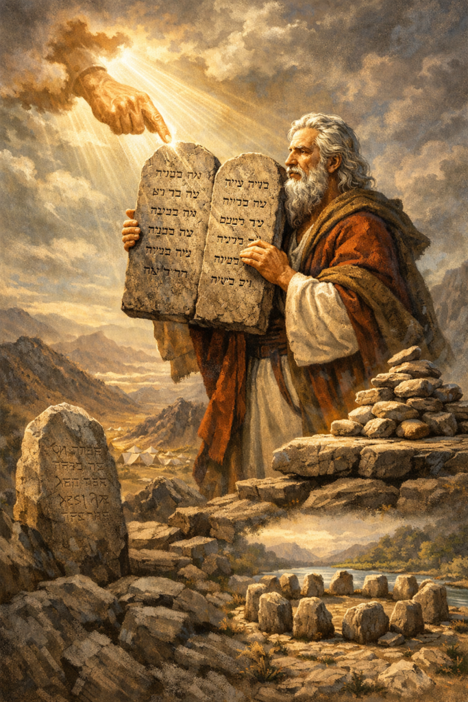 As pedras representam alguns dos registros mais solenes das Escrituras. Os Dez Mandamentos foram gravados em tábuas de pedra pelo próprio dedo de Deus, conforme registrado em Êxodo 31:18: “E deu a Moisés, quando acabou de falar com ele no monte Sinai, as duas tábuas do testemunho, tábuas de pedra, escritas pelo dedo de Deus.”
