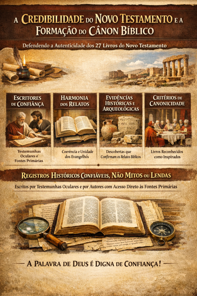 A credibilidade do Novo Testamento e a formação do cânon bíblico são temas absolutamente essenciais para qualquer curso de Bibliologia sério e aprofundado. Compreender os fundamentos que sustentam a confiabilidade dos escritos do Novo Testamento, bem como o processo pelo qual os livros da Bíblia foram reconhecidos como inspirados e canonizados, fortalece enormemente nossa fé e confiança nas Sagradas Escrituras. Neste estudo detalhado sobre a credibilidade do Novo Testamento, você descobrirá como a competência e honestidade dos escritores, a harmonia extraordinária dos textos, as confirmações históricas e arqueológicas, e os critérios rigorosos de canonicidade convergem para demonstrar que os 27 livros do Novo Testamento são genuinamente inspirados, autênticos e absolutamente confiáveis. Este conhecimento é fundamental para defender a fé cristã contra ataques céticos e para estabelecer uma base sólida de confiança na Palavra de Deus.