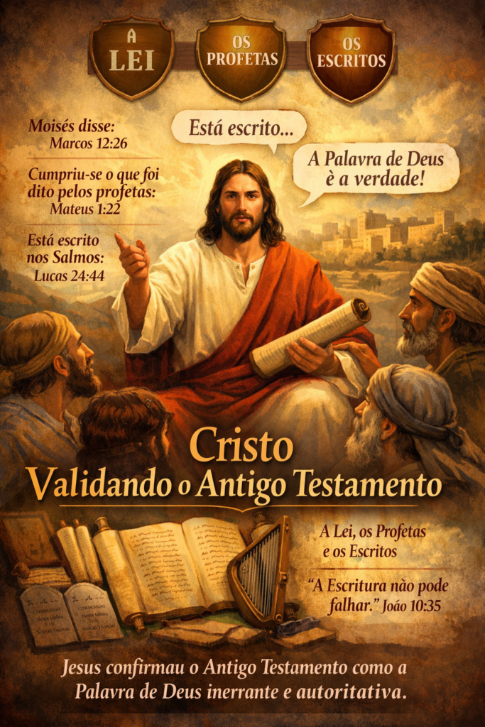 Jesus referiu-se repetidamente à Lei, aos Profetas e aos Escritos — as três divisões do cânon hebraico. Ele tratou essas Escrituras como Palavra de Deus inerrante e autoritativa. Este testemunho de Cristo valida definitivamente o cânon do Antigo Testamento.