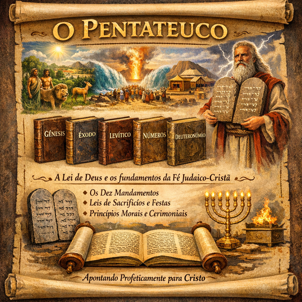 O Pentateuco estabelece os princípios morais, cerimoniais e civis que regeriam a vida do povo de Deus. É aqui que encontramos os Dez Mandamentos, as leis sobre sacrifícios, festas e práticas que apontavam profeticamente para Cristo.
