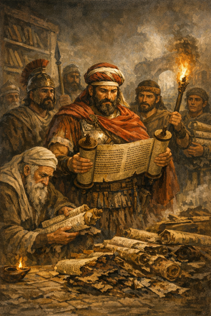 A história registra períodos terríveis de perseguição contra a Palavra de Deus. Antíoco Epifanes, no século II a.C., promoveu uma campanha violenta para destruir todas as cópias da Torah, tentando erradicar a fé judaica. Séculos depois, o imperador romano Diocleciano ordenou a destruição sistemática das Escrituras cristãs.