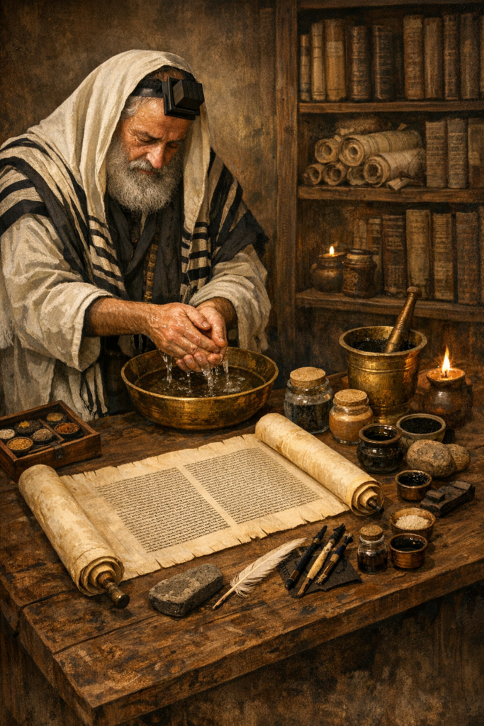 O processo de cópia seguia protocolos extremamente rigorosos desenvolvidos ao longo de gerações. Os escribas não podiam simplesmente sentar e copiar casualmente. Cada etapa era regulamentada por tradições meticulosas que garantiam precisão absoluta.