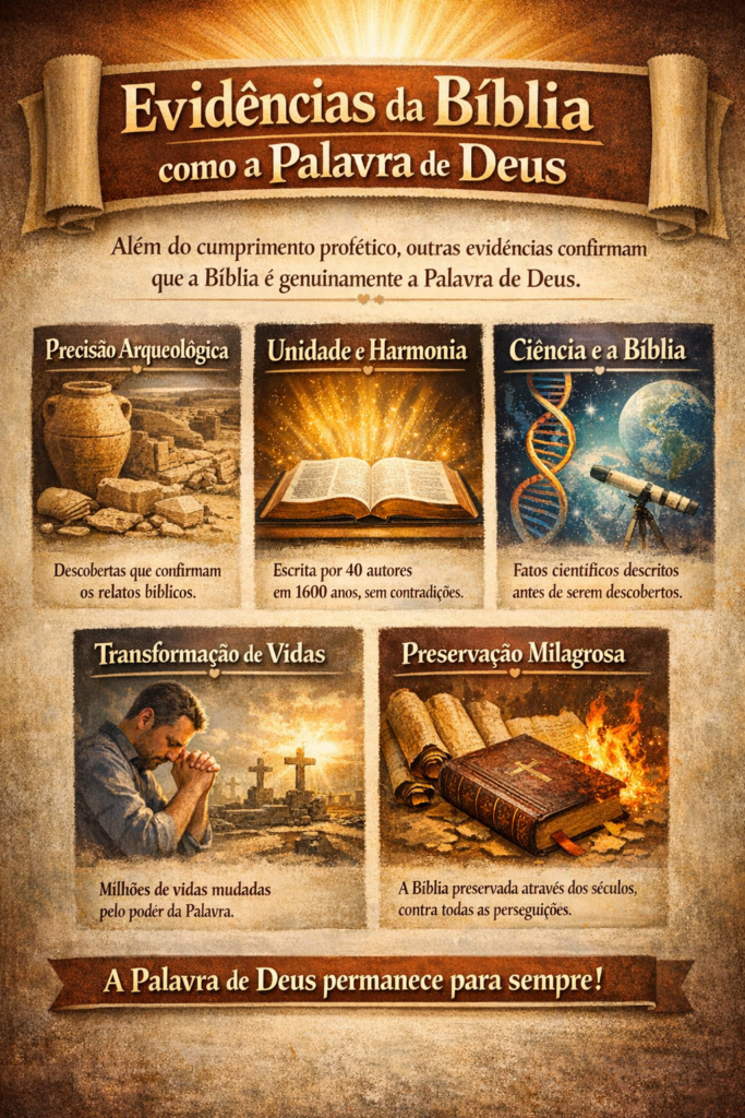 As profecias cumpridas são, portanto, a assinatura de Deus nas Escrituras. Elas autenticam o texto bíblico de maneira que nenhum argumento humano jamais poderia fazer. Cada profecia cumprida é um selo divino atestando: “Estas são Minhas palavras”.