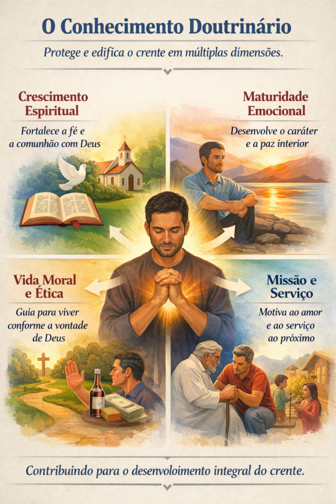 Contrariando a percepção popular, as Escrituras apresentam a doutrina não como peso que enfraquece, mas como alimento que fortalece a vida espiritual. O conhecimento correto de Deus e Seus caminhos sempre edifica a fé genuína.