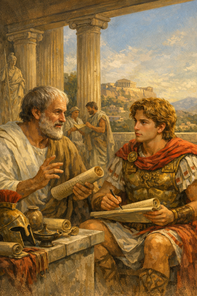 Os macedônios ficaram profundamente admirados e apaixonados pela cultura e idioma gregos. Filipe II garantiu que seu filho Alexandre recebesse a melhor educação possível, contratando ninguém menos que Aristóteles como tutor pessoal do jovem príncipe. Sob orientação deste gigante intelectual, Alexandre tornou-se não apenas guerreiro formidável, mas também filósofo e conhecedor profundo do grego ático.