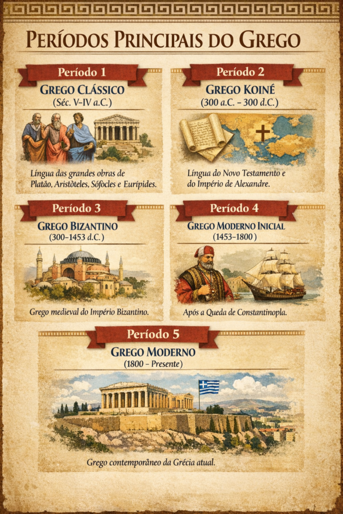 Para contextualizar adequadamente o grego do Novo Testamento, é essencial compreender os cinco períodos principais do desenvolvimento do idioma grego: