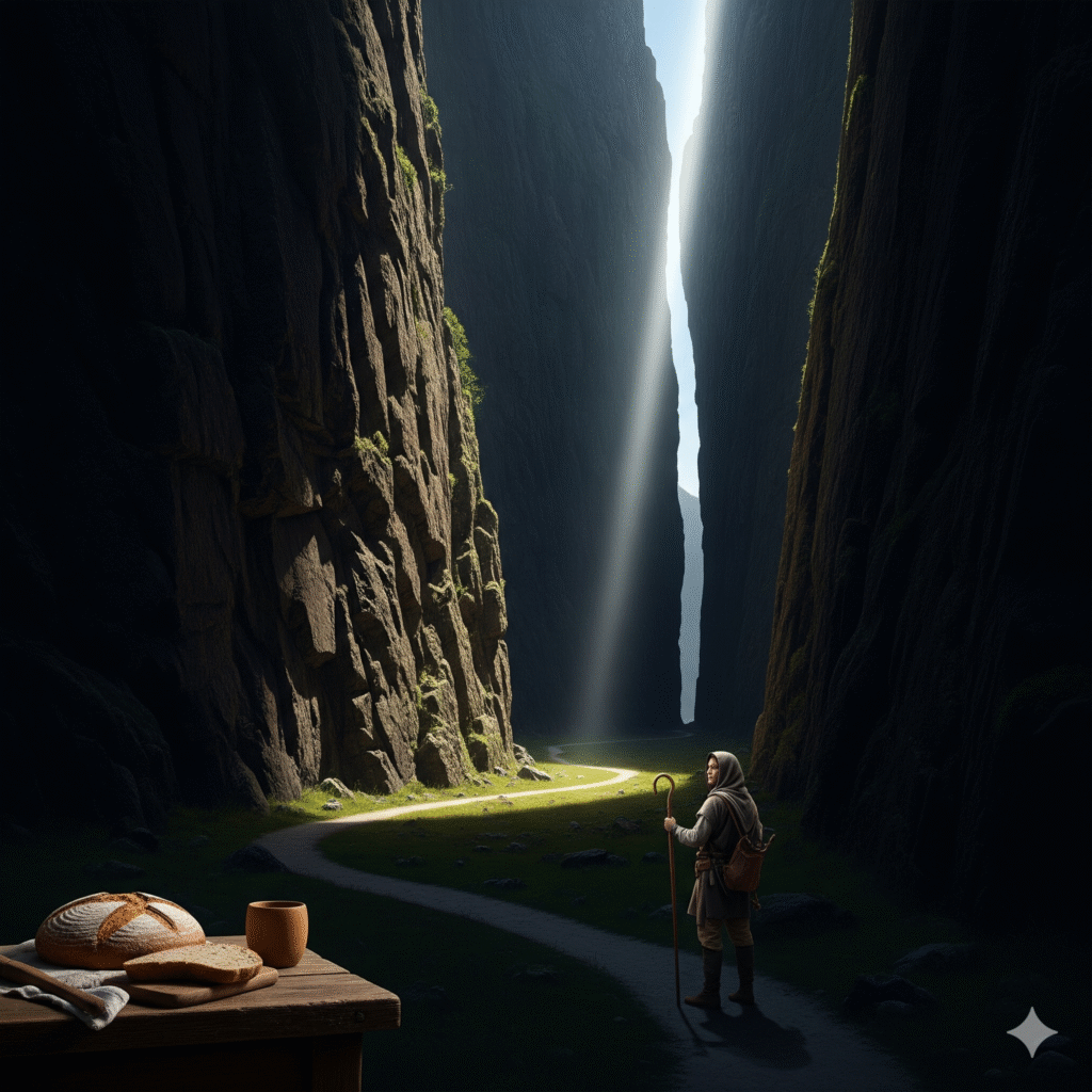 O segredo: “Ainda que eu ande pelo vale da sombra…” Davi passa pelo vale. A palavra-chave é sombra — se há sombra, há luz por perto.